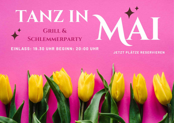 Lust auf eine unvergessliche Nacht voller Tanz, Musik und Genuss? Dann sei dabei, wenn wir gemeinsam in den Mai tanzen! Grill & Schlemmerparty: Jeder bringt etwas Leckeres mit - ob Salat, Süßspeise oder andere Köstlichkeiten! Freu dich auf einen Abend voller Rhythmus, Geselligkeit und kulinarischer Highlights.